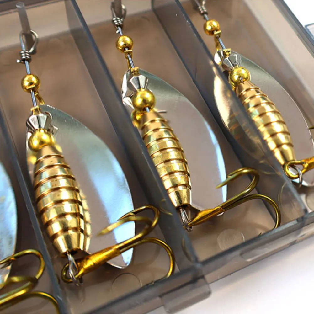 Boxed Metal Spoon Spinner Lure Set With Treble Hooks