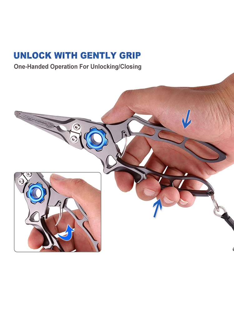 - Featuring titanium alloy jaws and w Tungsten carbide cutters, you get exceptional strength and clean cuts through mono, fluorocarbon, and braided lines.